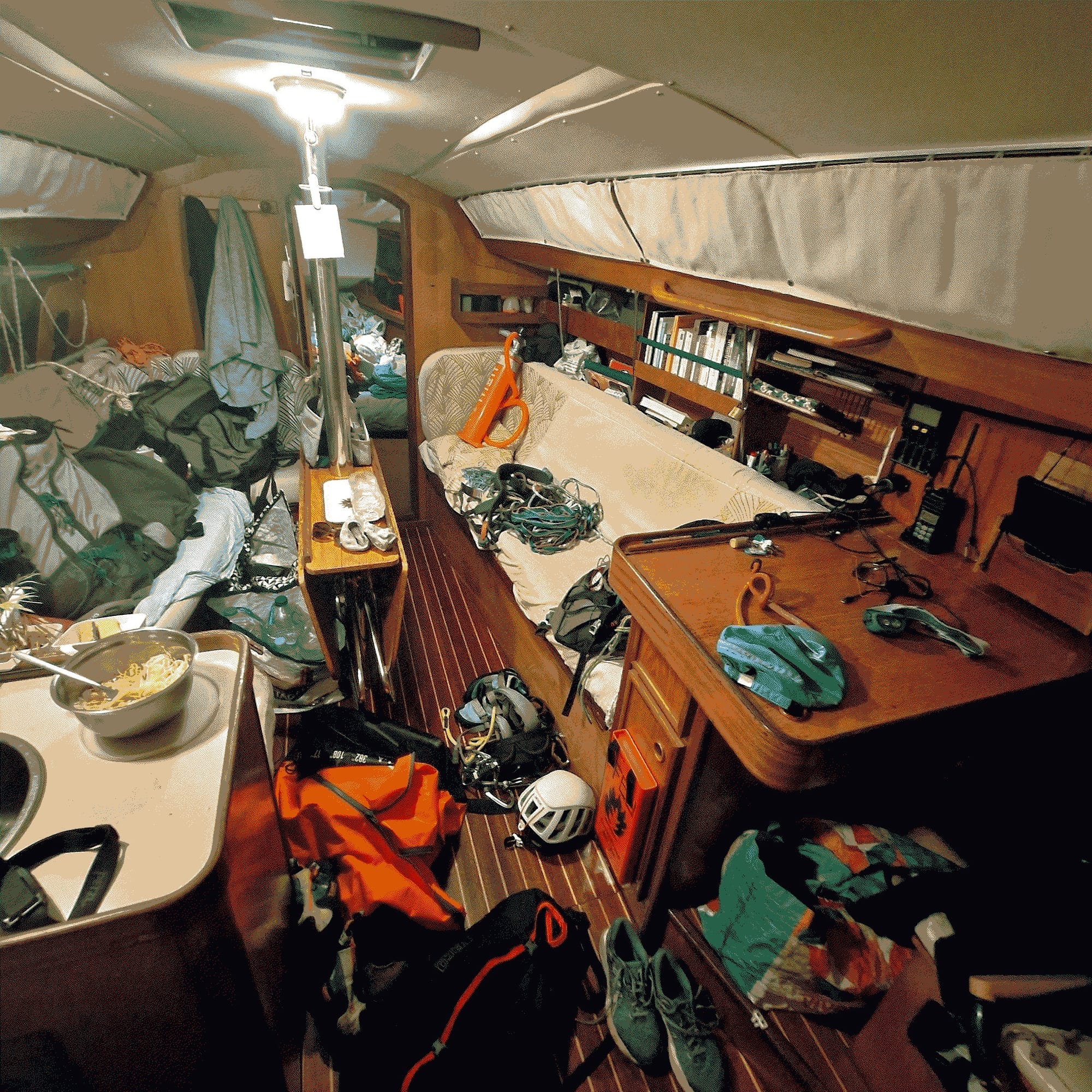 Quelques mètres carrés, dans lesquels la coopération n'y est pas une option morale mais une nécessité vitale quand on navigue à plusieurs. Les masques sociaux tombent vite parce que l'espace est trop petit pour les maintenir. Les tensions émergent mais peuvent être travaillées parce qu'on ne peut pas fuir. Chaque équipage réinvente sa façon de faire collectif, qu'il le veuille ou non.